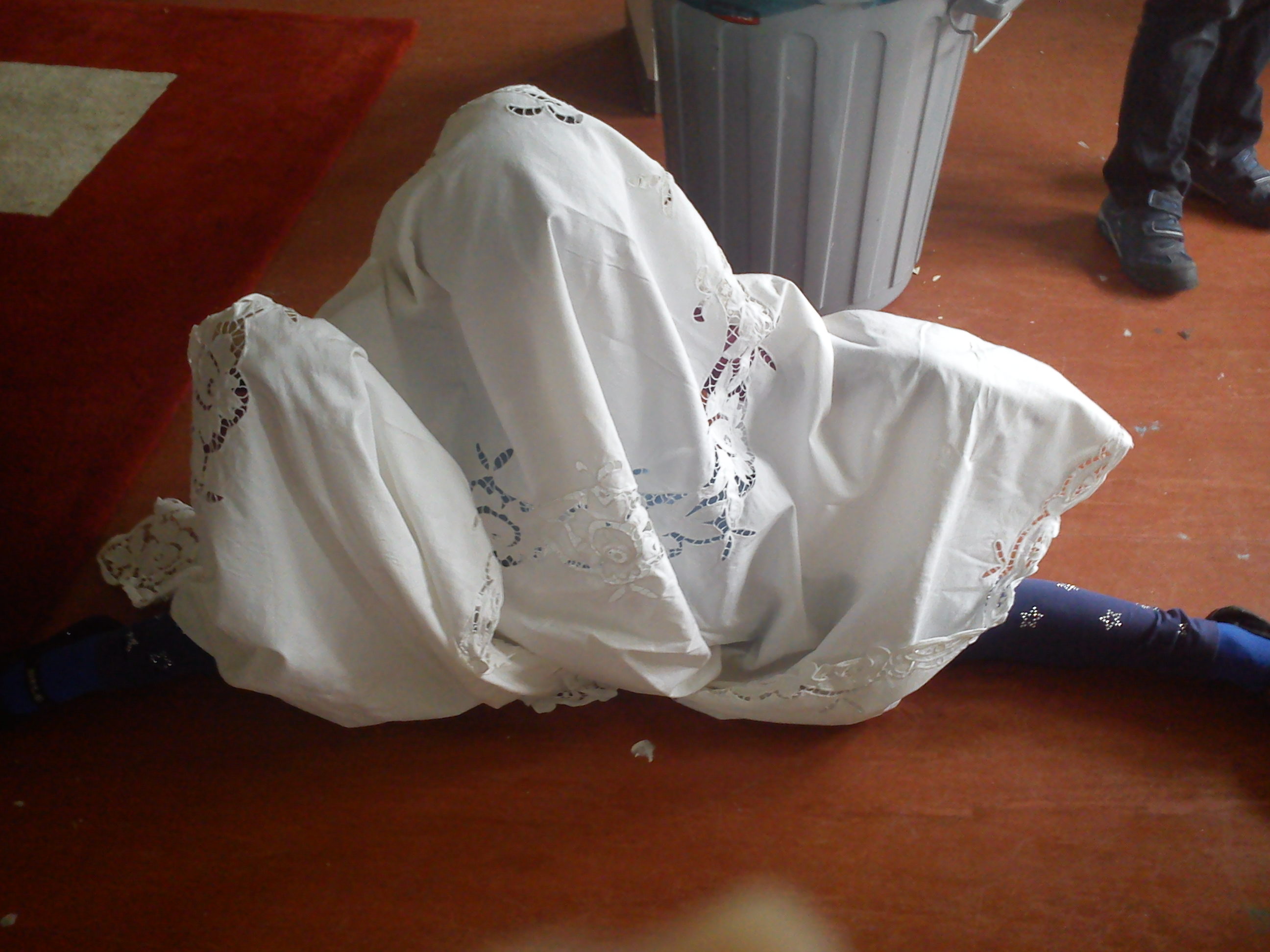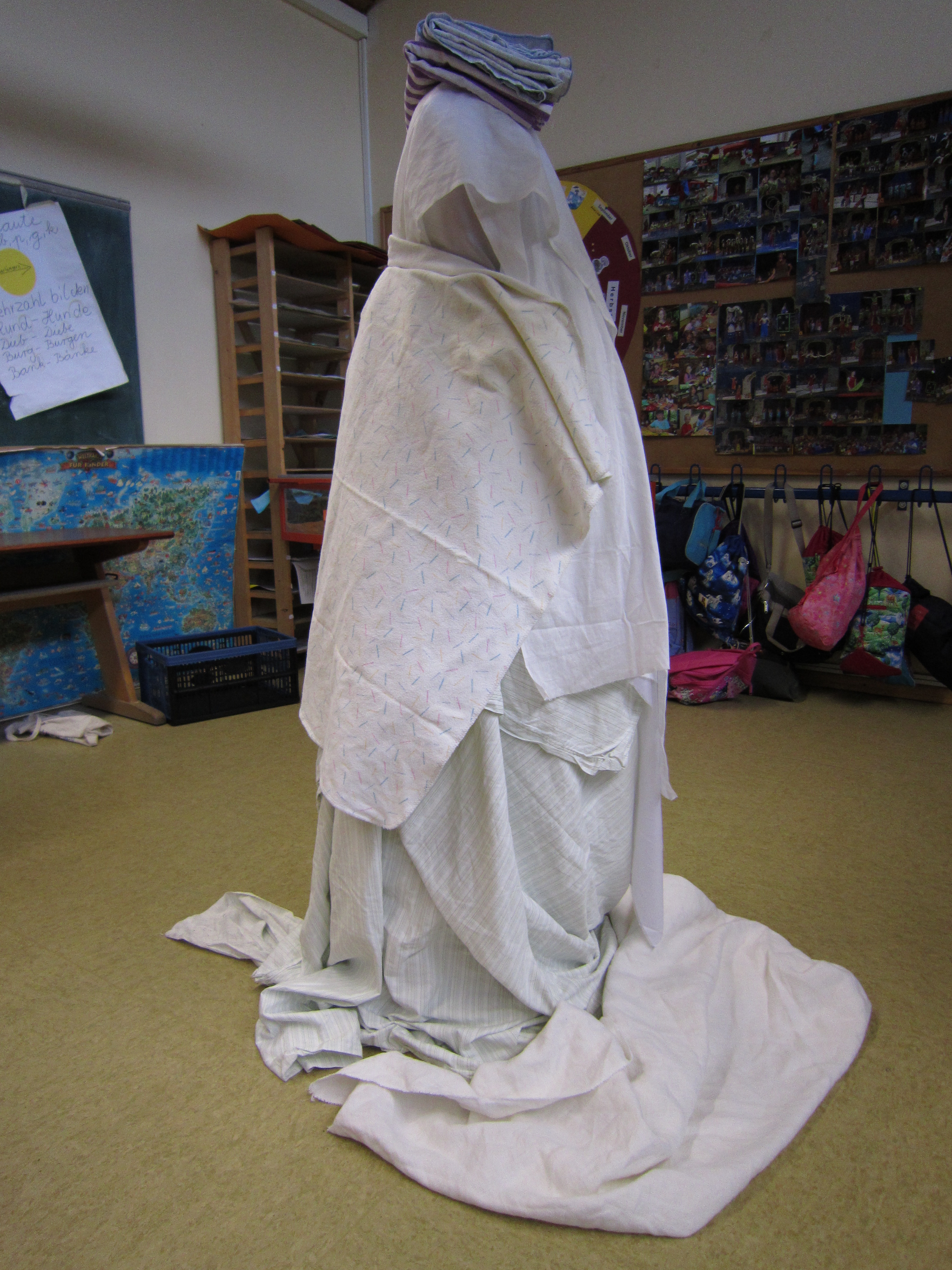 The kids adopted his strategy of veiling and covered their own bodies with fabrics and ribbons. We talked about the upcomming questions like why do people wrap things in daily life and in art and what it actually does to the veiled subject and the beholder.