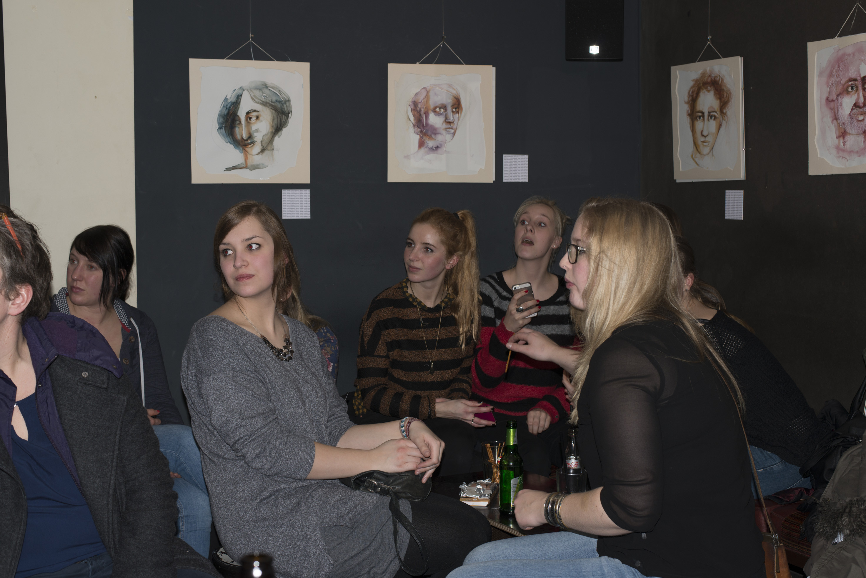 In der Konzeption der Ausstellung habe ich mich dem Thema aus einer imaginativ ästhetischen Wahrnehmung heraus genähert. Ich habe Menschen aus dem Kölner Telefonbuch angerufen und um Erlaubnis gebeten, ein Porträt – nur auf Grundlage des Namens, anfertigen zu dürfen. Die Reaktionen hierauf schwankten größtenteils zwischen völligem Unverständnis und starker Ablehnung. Dieses war situativ bedingt, zeigt aber auch das große Empfinden einer Besitzhaftigkeit dem eigenen Namen gegenüber. Mir als unbekannter Person am Telefon wollten sie ebenso wenig ihren Namen ausleihen, wie sie mir ihren Kleinwagen anvertraut hätten. Einige aufgeschlossene Reaktionen ermöglichten mir aber das Weiterführen meiner Arbeit. Diese näherte sich auf imaginative Art, genährt von eigenen Vorurteilen und Zuschreibungen, der Gestaltung der Menschen.