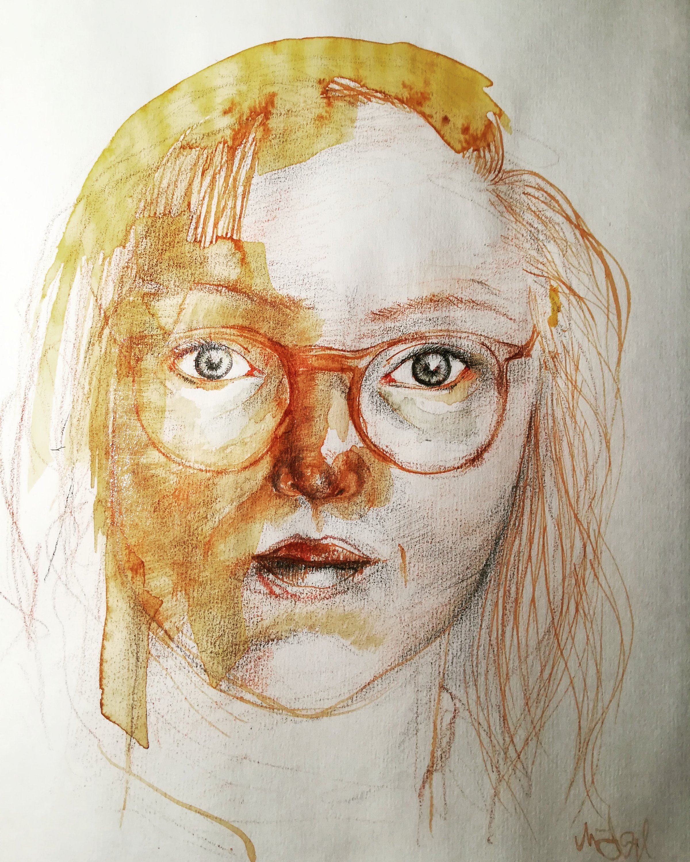 Am Morgen vorgelesen, Aquarell Blei- und Buntstift auf Papier, 22,8×30,4cm